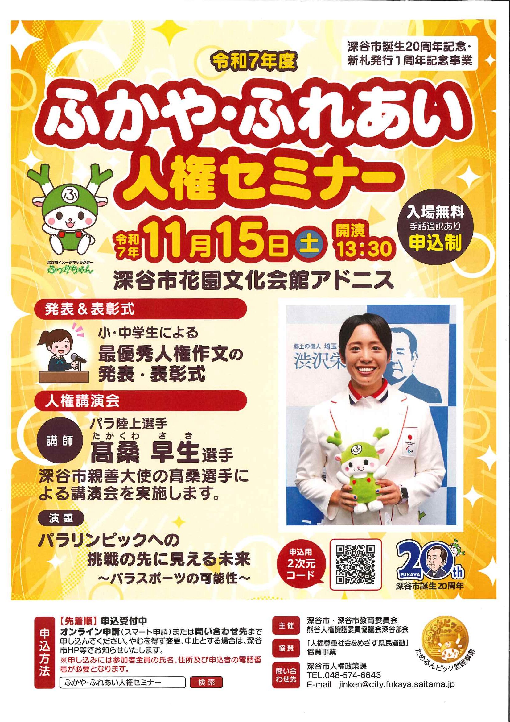 2025 11/15 ふかや・ふれあい人権セミナー 時間 13:30~16:30 年月日(曜日) 2025年11月15日(土) 会場 大ホール 出演 高桑早生 入場方法 事前申込 主催 深谷市人権政策課 お問合せ 048-574-6643 Post Share Hatena Line RSS feedly Pin it note イベント一覧