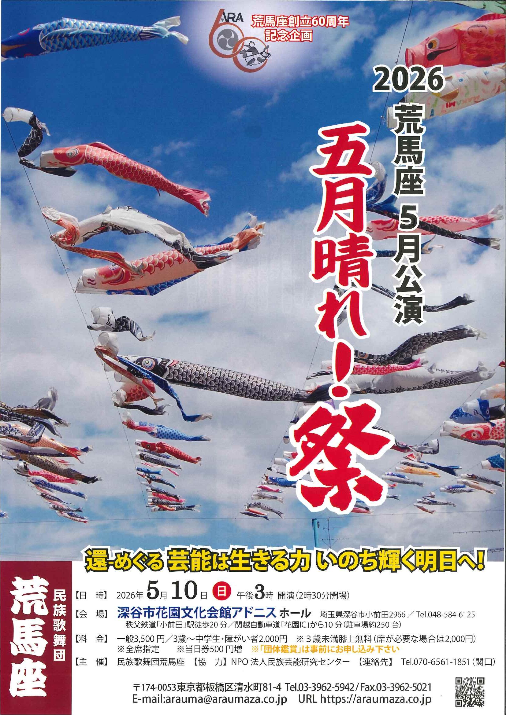 2026 5/10 2026 荒馬座5月公演 「五月晴れ!祭」 当館でもチケット販売中!! Post Share Hatena Line RSS feedly Pin it note イベント一覧