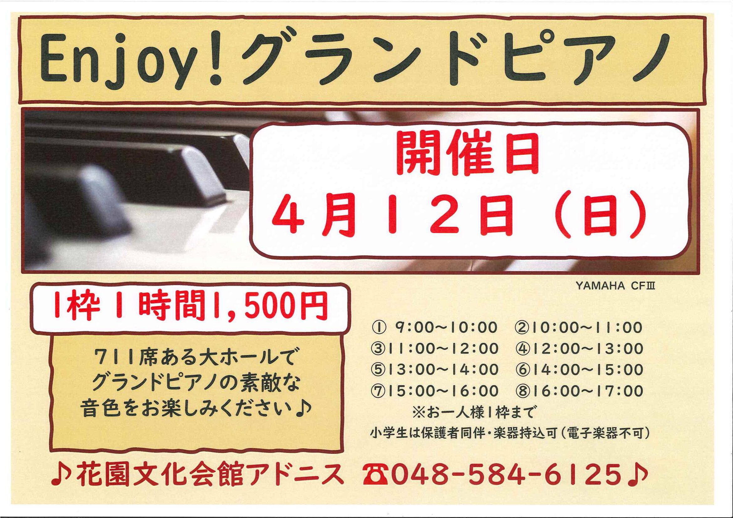 | お問い合わせ | 花園文化会館アドニス ☎048-584-6125 |
