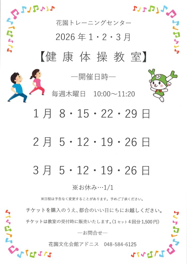NEWS 花園農業者トレーニングセンター「健康体操教室」より1・2・3月の予定表を更新しました! 2025.11.29 NEWS 2026年1.2.3 月予定表 Post Share Hatena Line RSS feedly Pin it note 2/7 うたごえ広場~冬~ 前の記事 新着のお知らせ 2/7 うたごえ広場~冬~ 2025.11.12 ~冬休み工作教室~ 親子で描いて飛ばすオリジナル和凧作り 2025.11.09 12/14 クリスマスチャリティーフェスティバル 2025.11.04