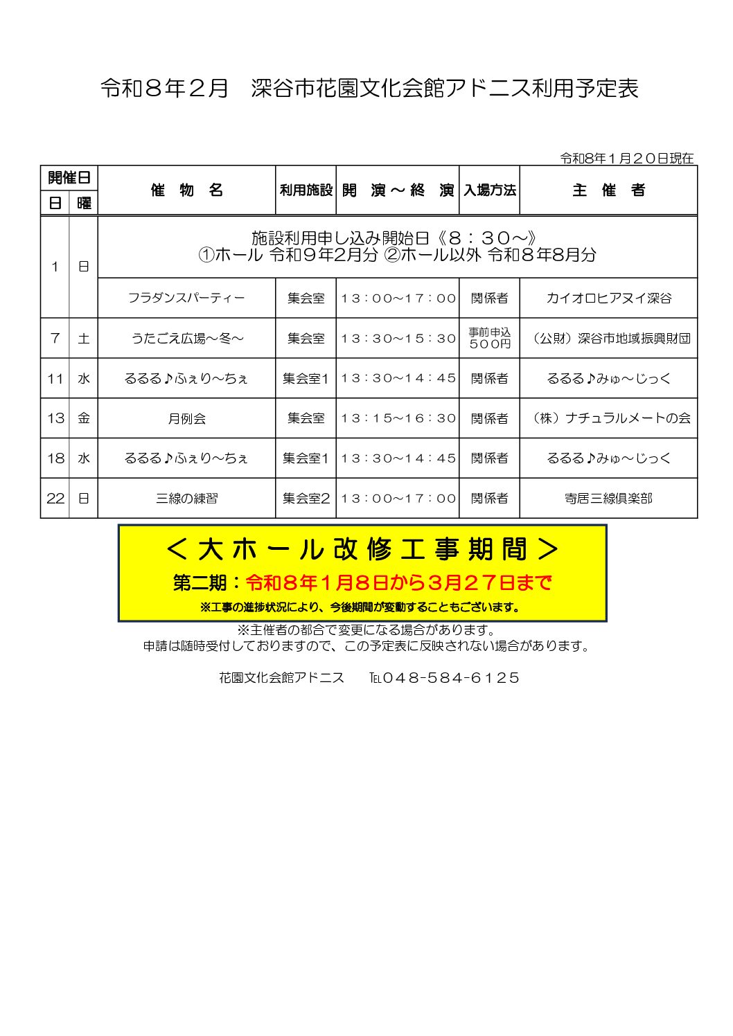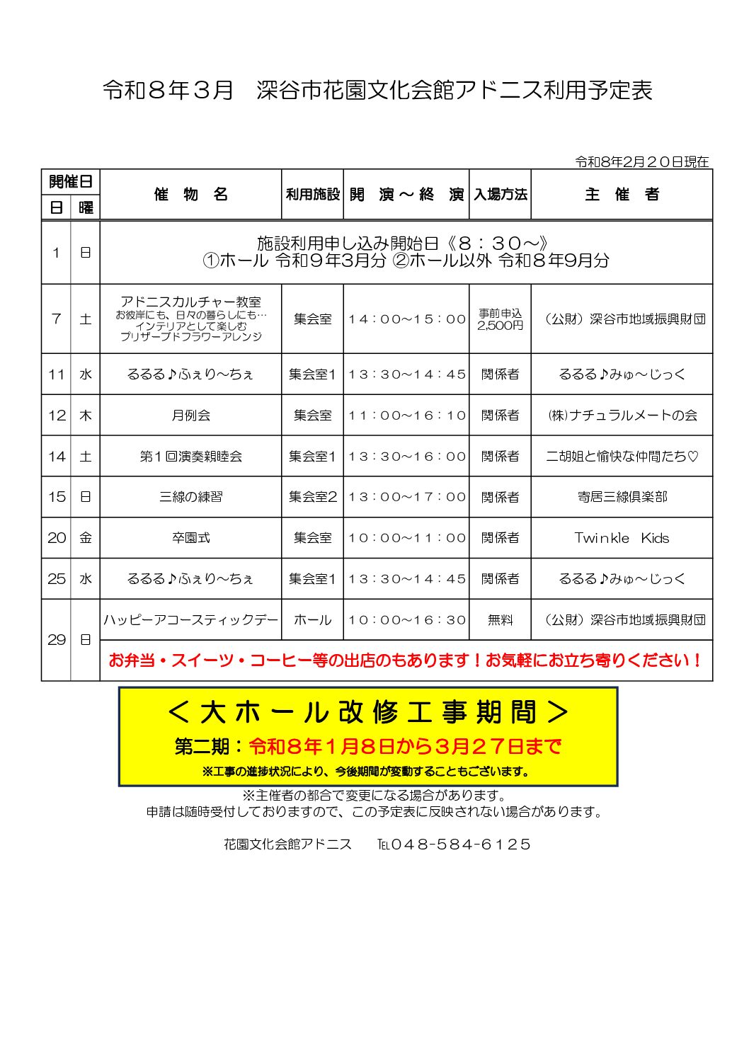 今月の施設利用予定表【PDF】