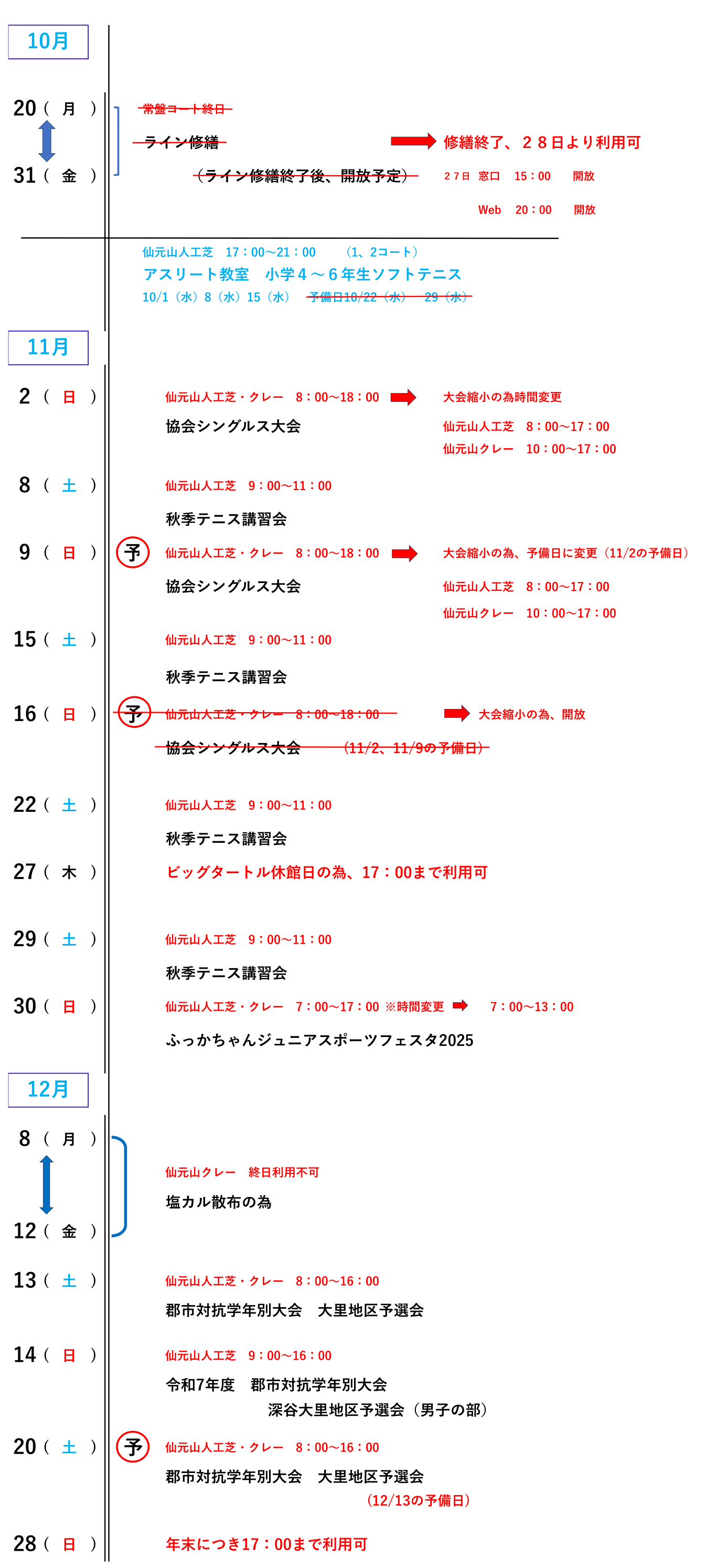 @深谷ビッグタートルで開催される大会及びイベント等の利用予定表