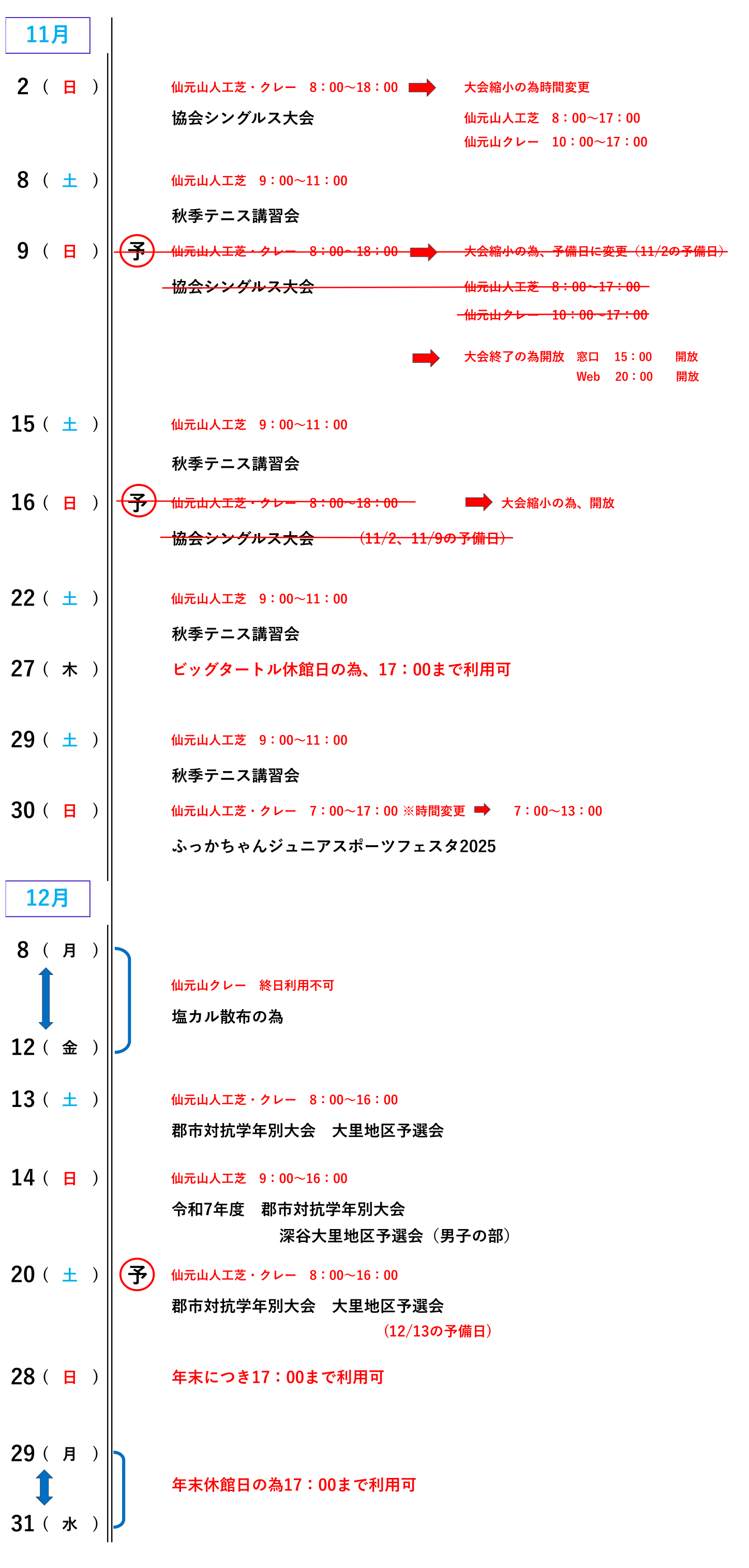 テニスコート大会予定(令和7年11月3日更新)