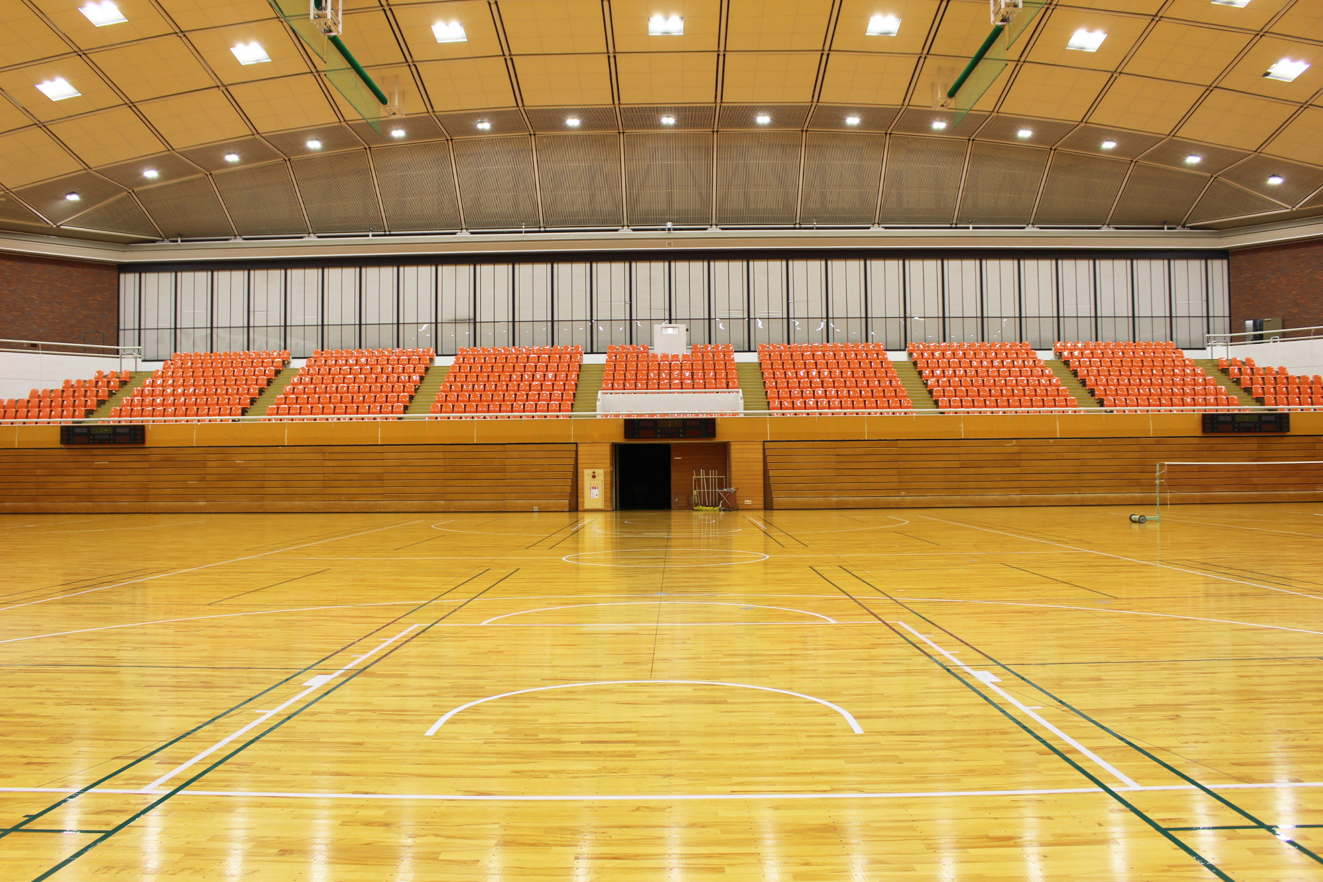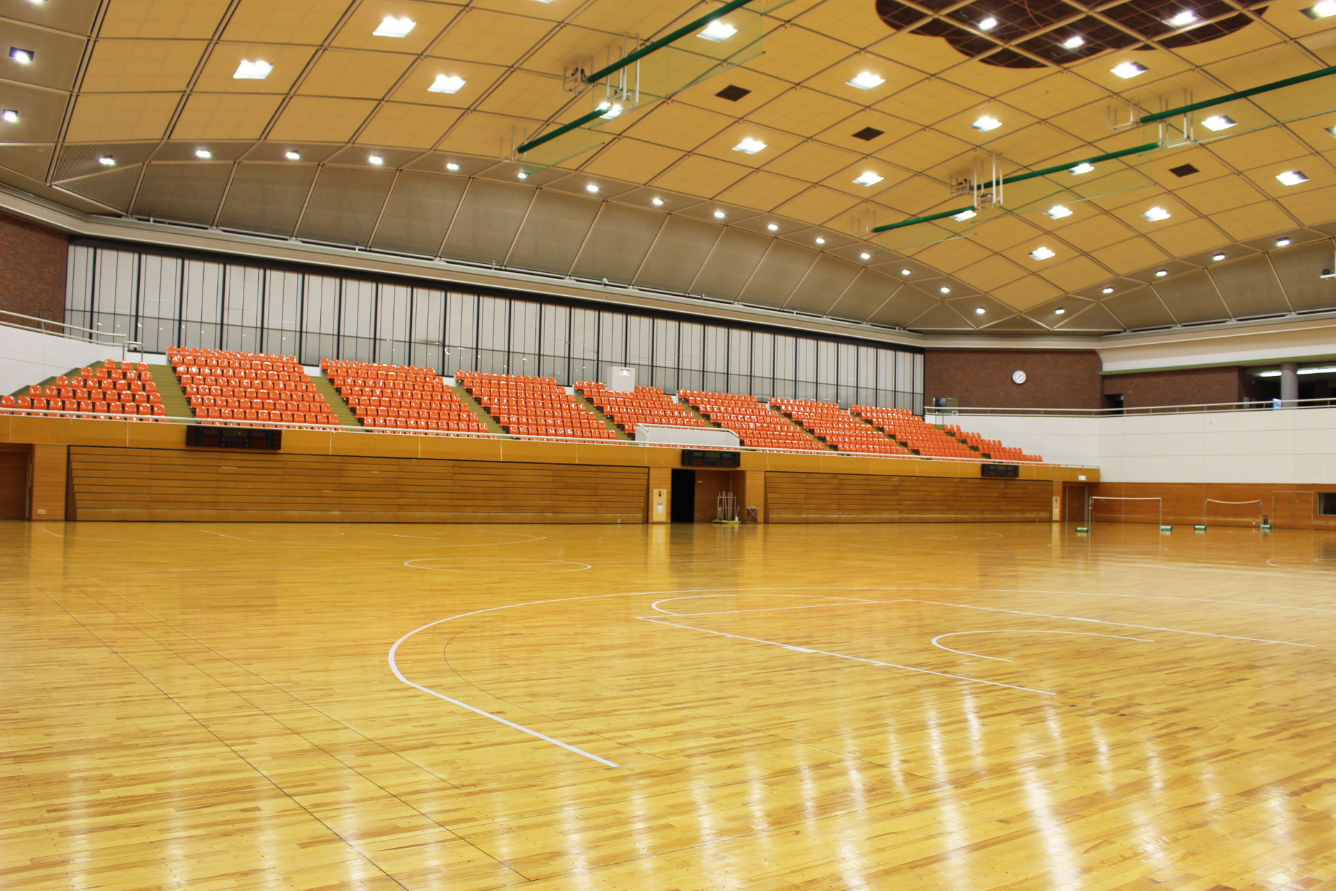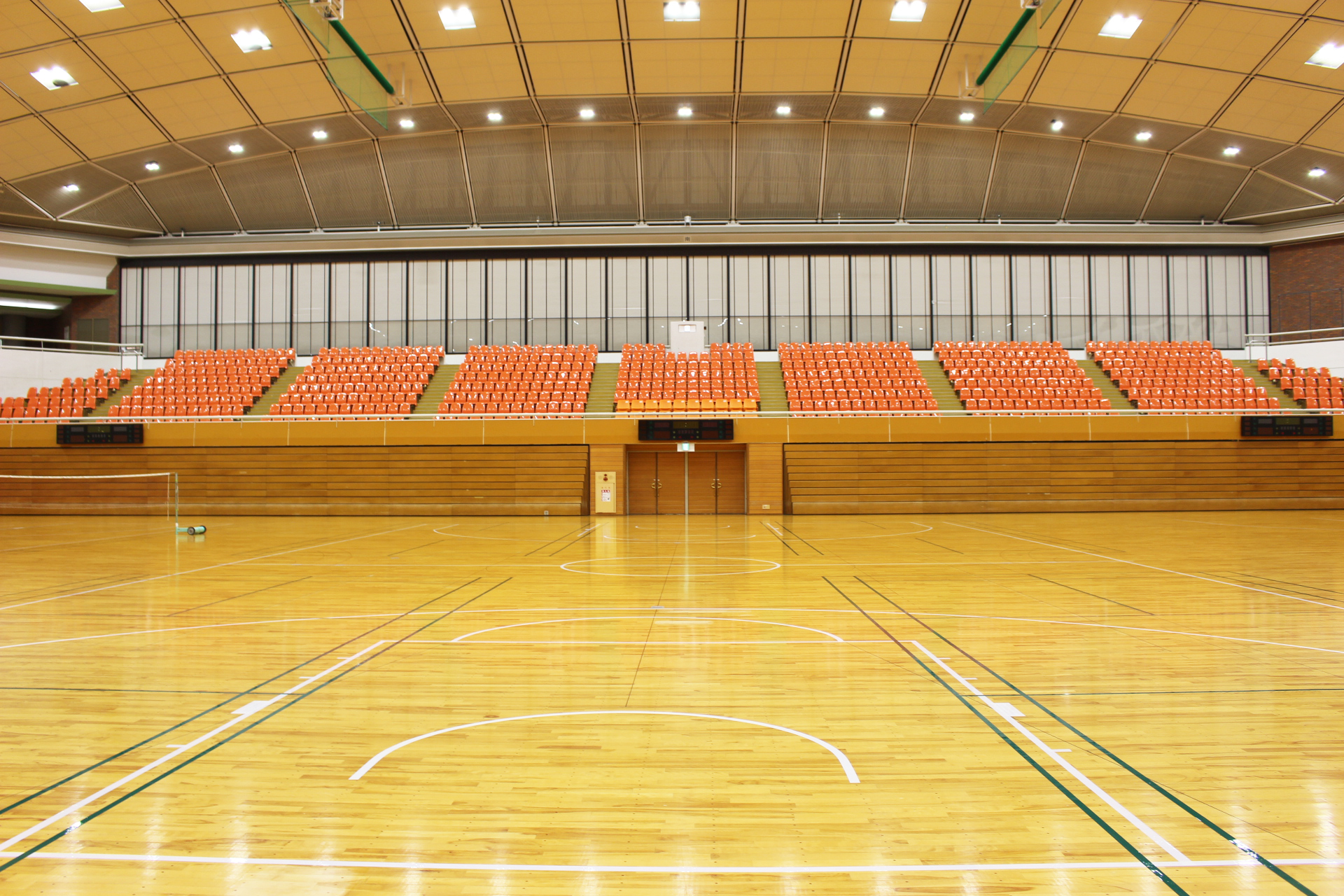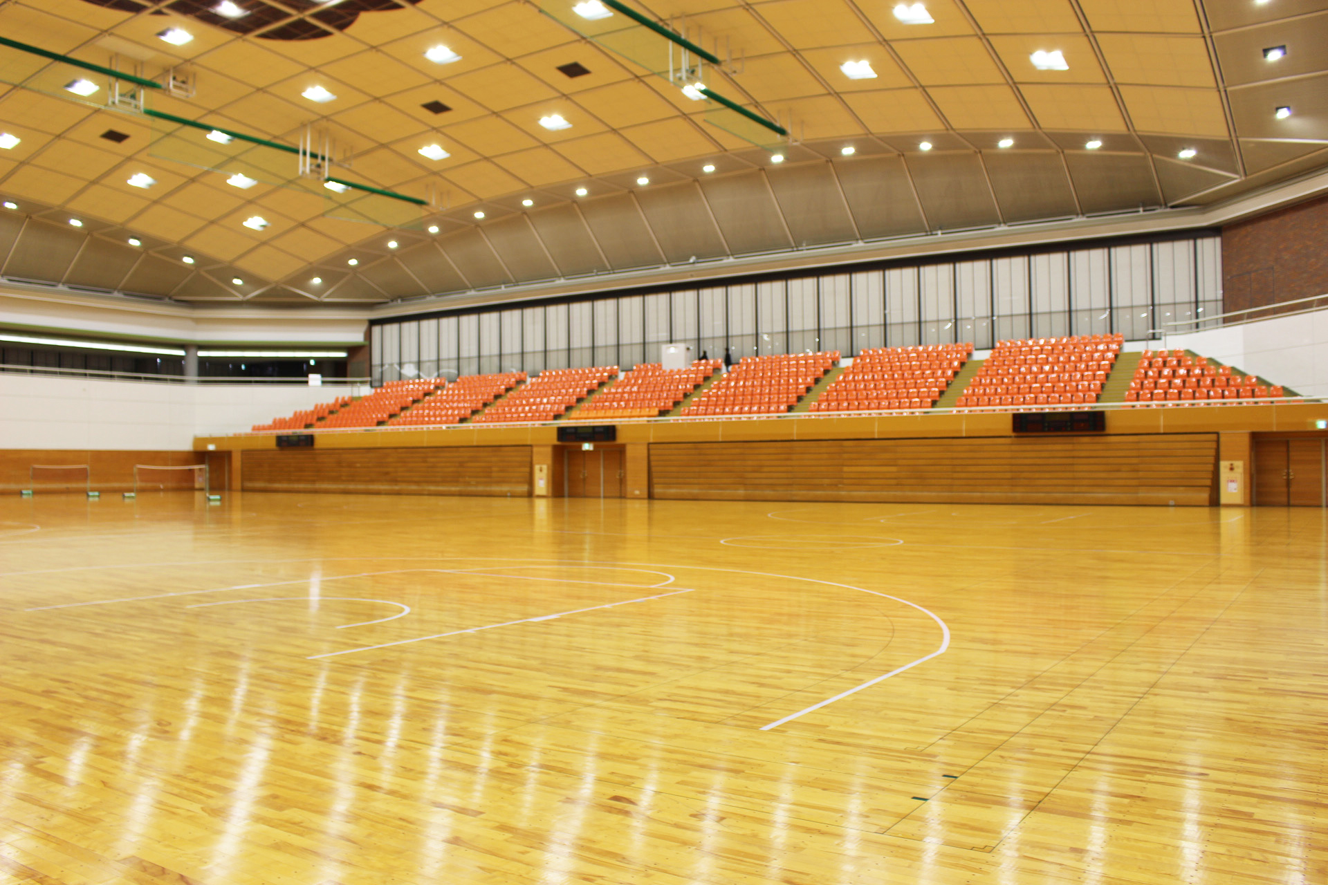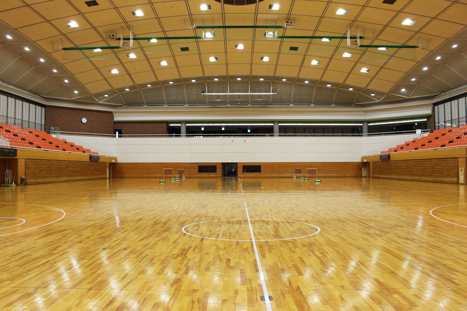 バレーボール3面・バスケットボール3面・バドミントン12面が利用できる広さがあります。 2階には、1,508席の固定観客席と、周囲には1周約240mのランニングコースがあります。 1階アリーナ内には、1,512席の移動観客席があり、合計3,000人以上を収容することにより、各種スポーツのほか運動会や講演会、 レセプション等のイベントの利用も可能です。