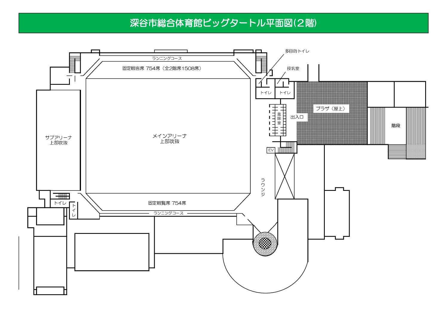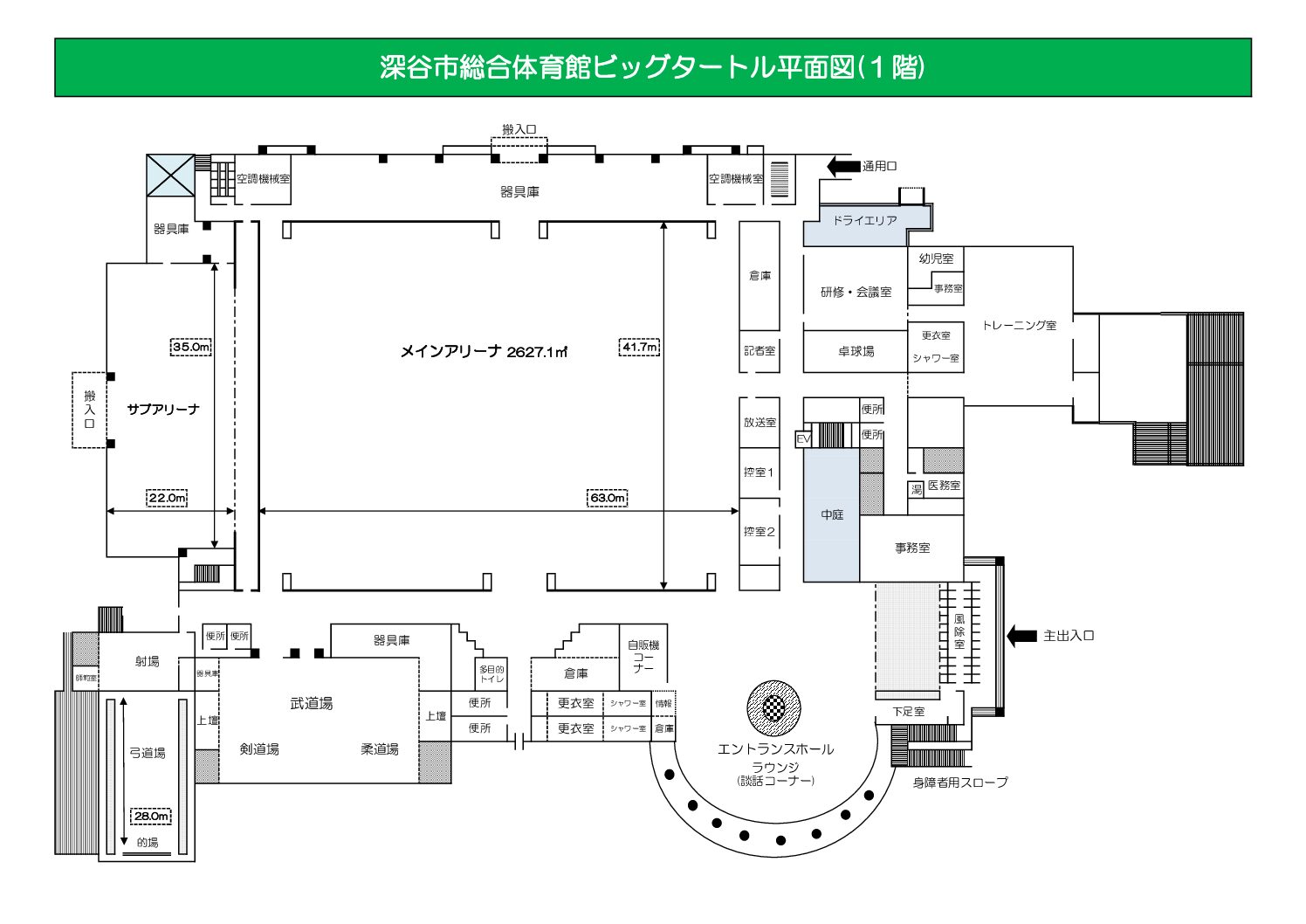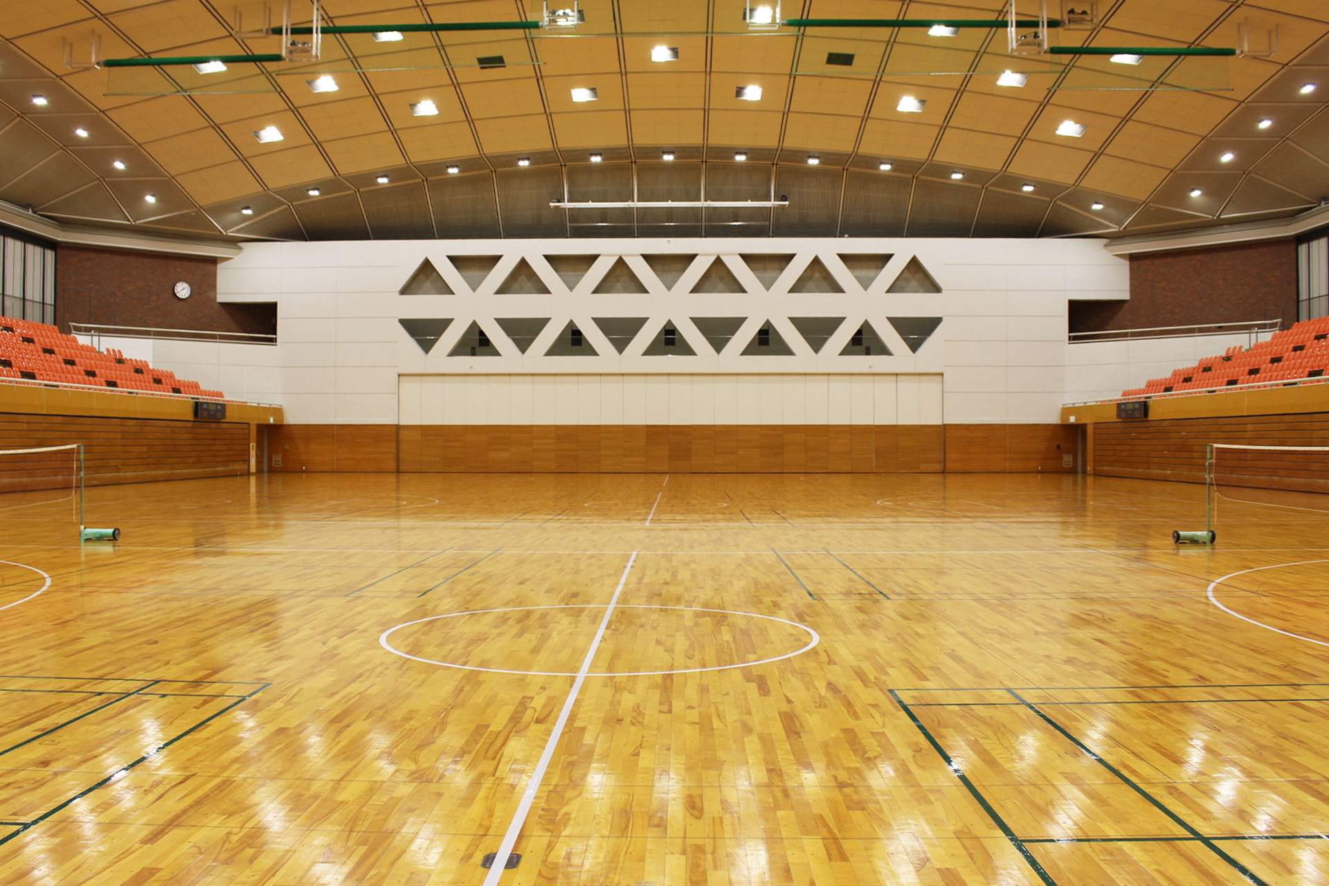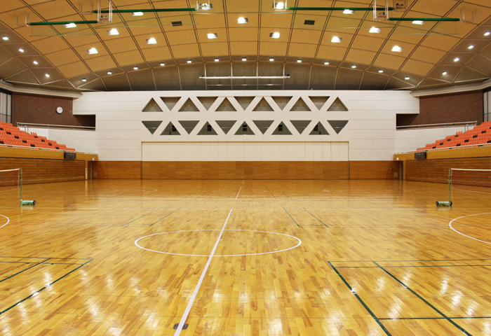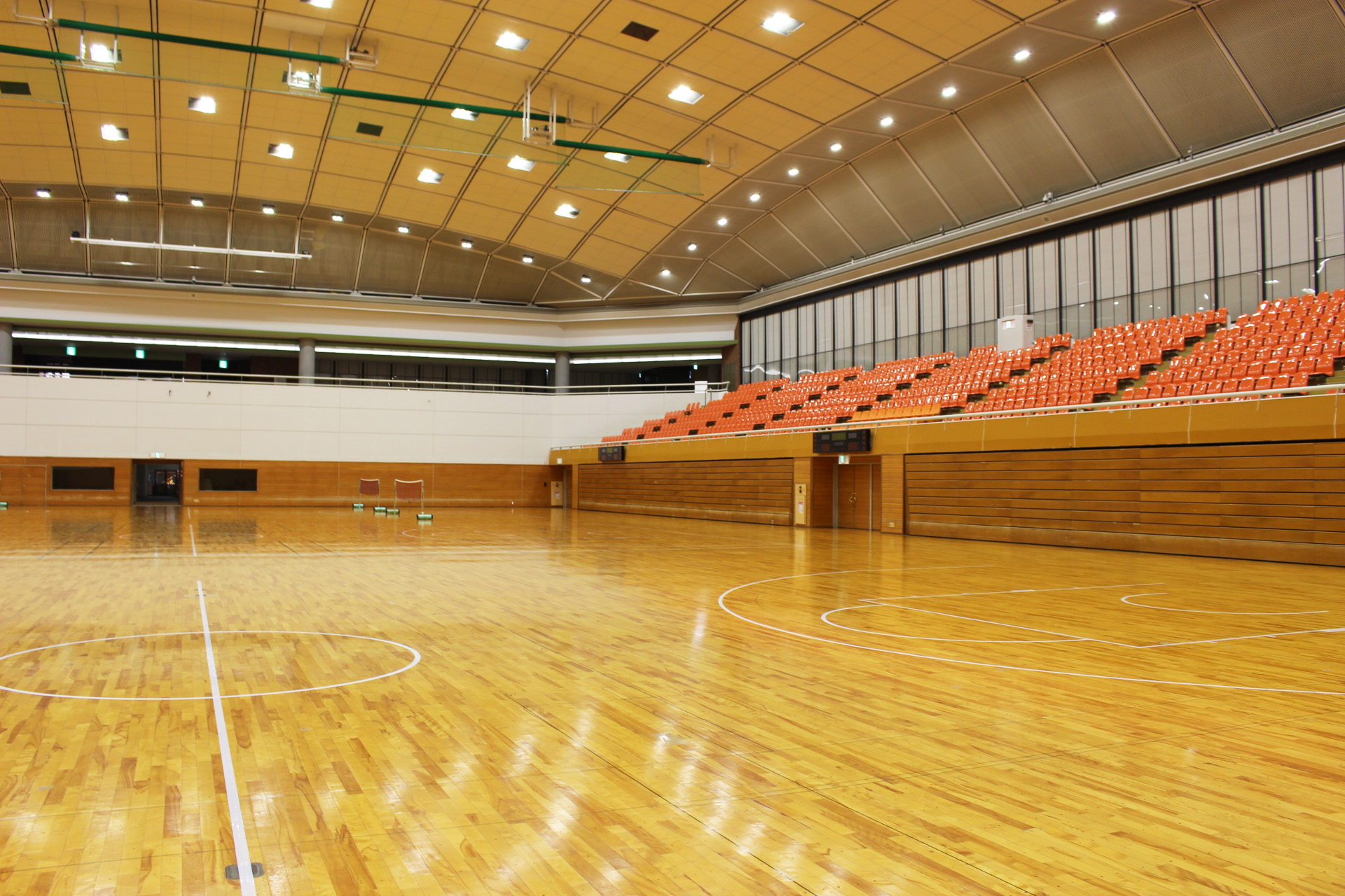 バレーボール3面・バスケットボール3面・バドミントン12面が利用できる広さがあります。 2階には、1,508席の固定観客席と、周囲には1周約240mのランニングコースがあります。 1階アリーナ内には、1,512席の移動観客席があり、合計3,000人以上を収容することにより、各種スポーツのほか運動会や講演会、 レセプション等のイベントの利用も可能です。