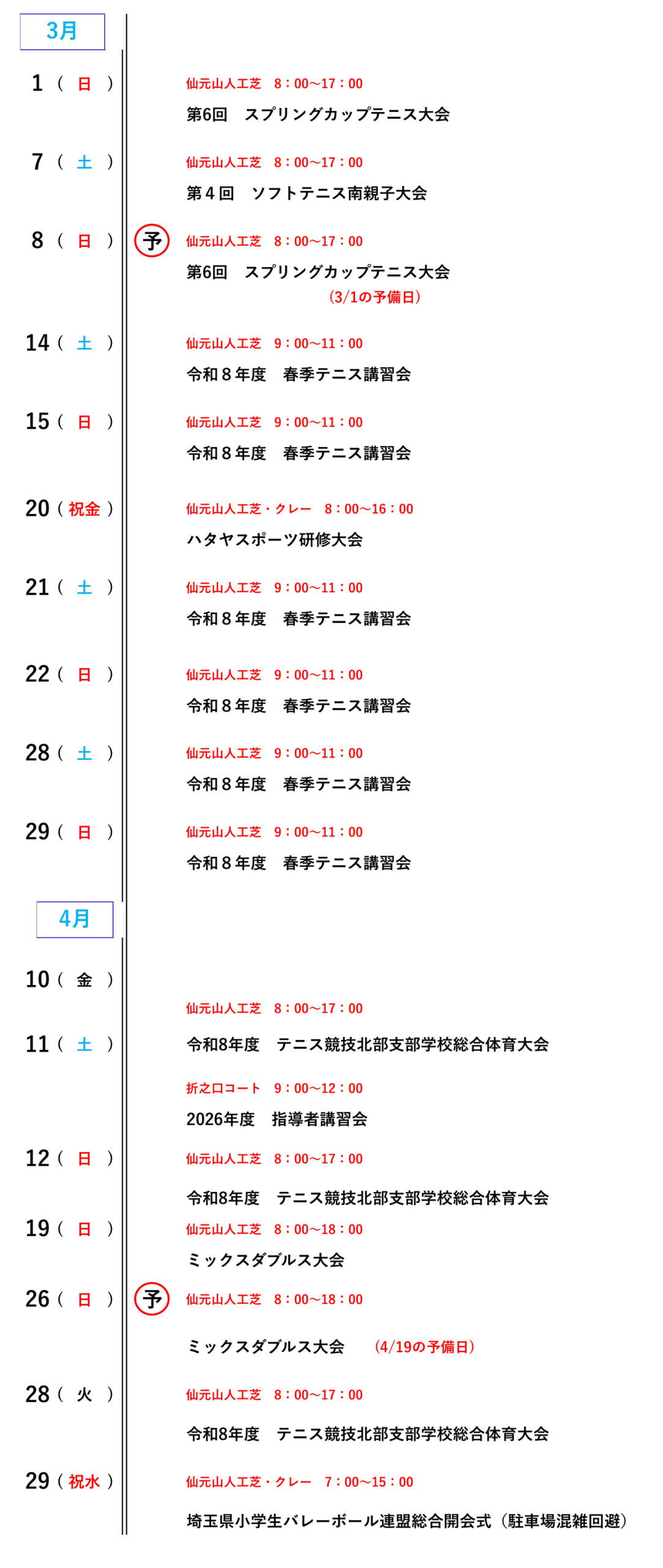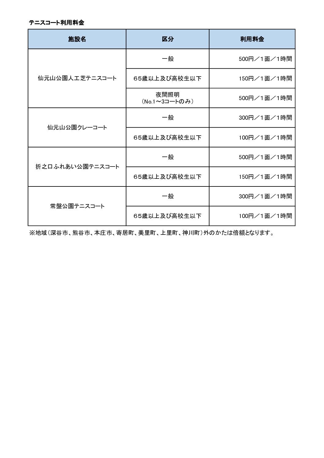 設備:人工芝6面、(うち、№1~3コートの計3面は夜間照明完備)