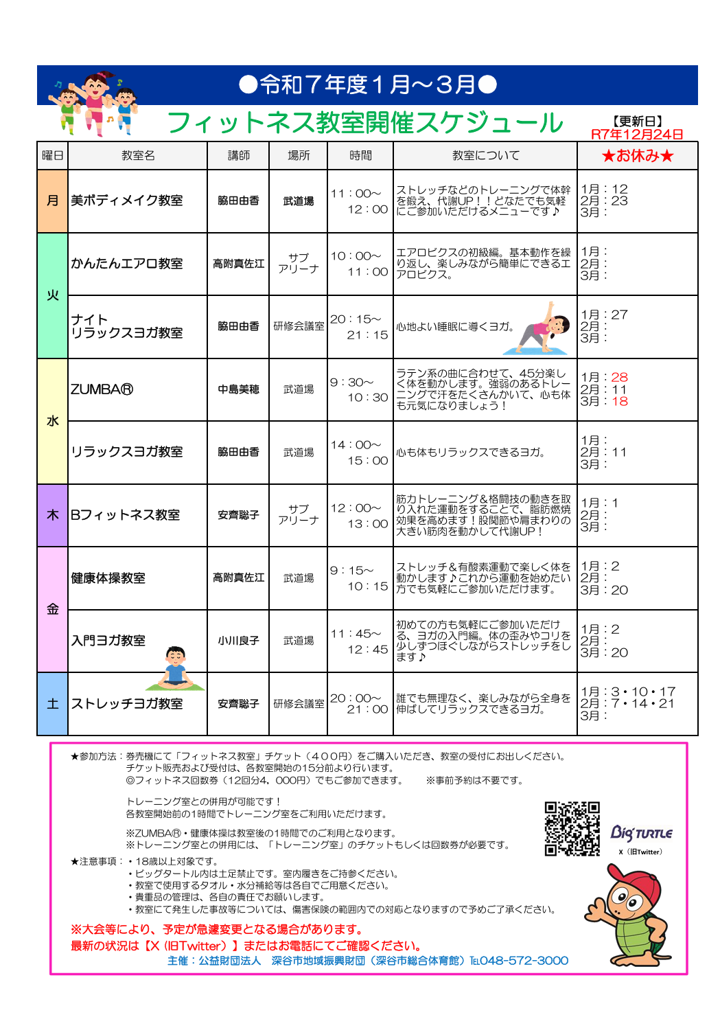 また、教室の時間・内容等は変更になることもございます。