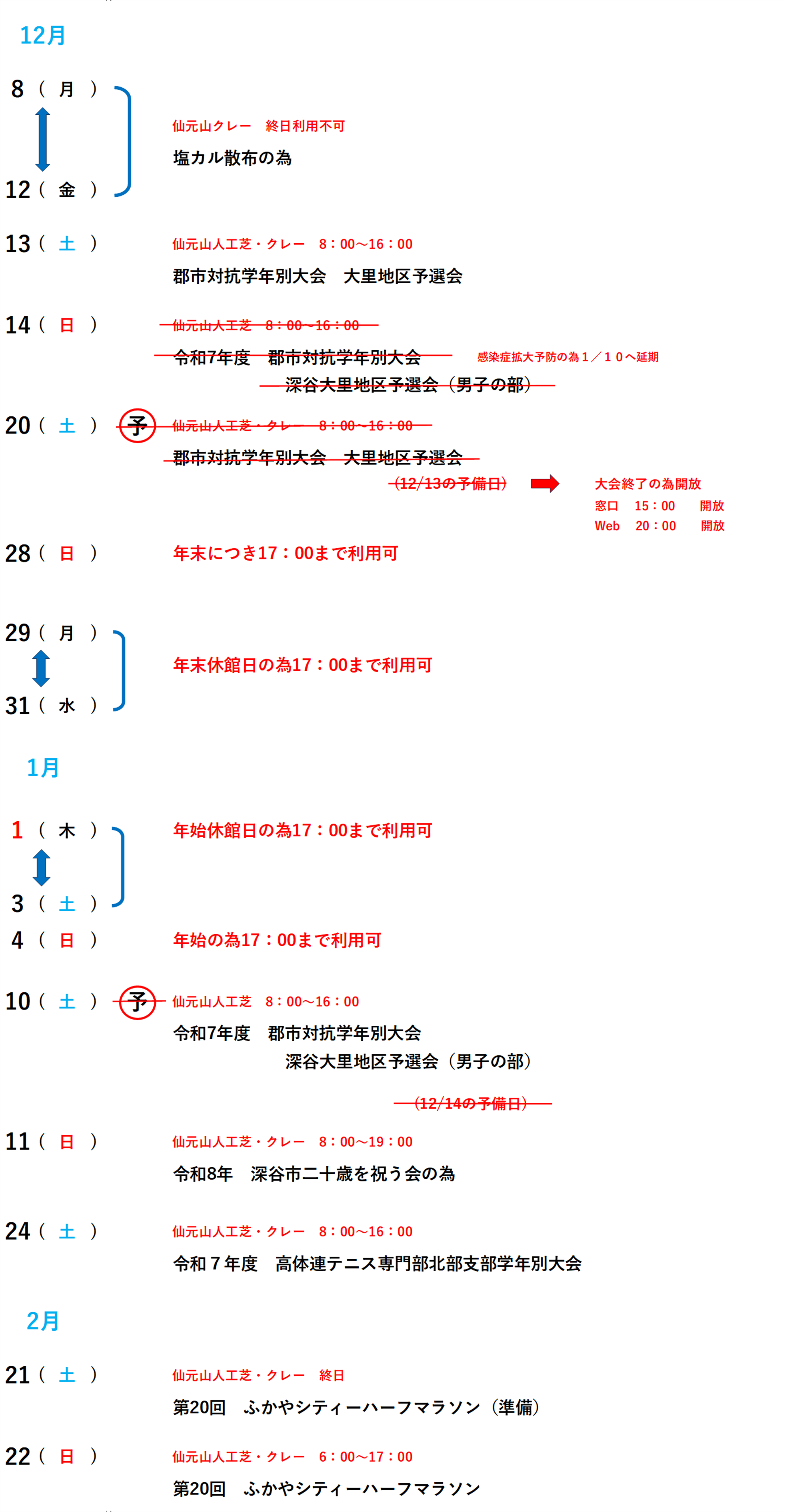 【お知らせ】令和7年12月20日(土)・21日(日)の各種個人利用についてのお知らせ(令和7年12月9日更新)