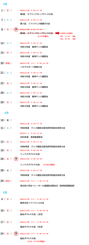 仙元山テニスコート大会予定