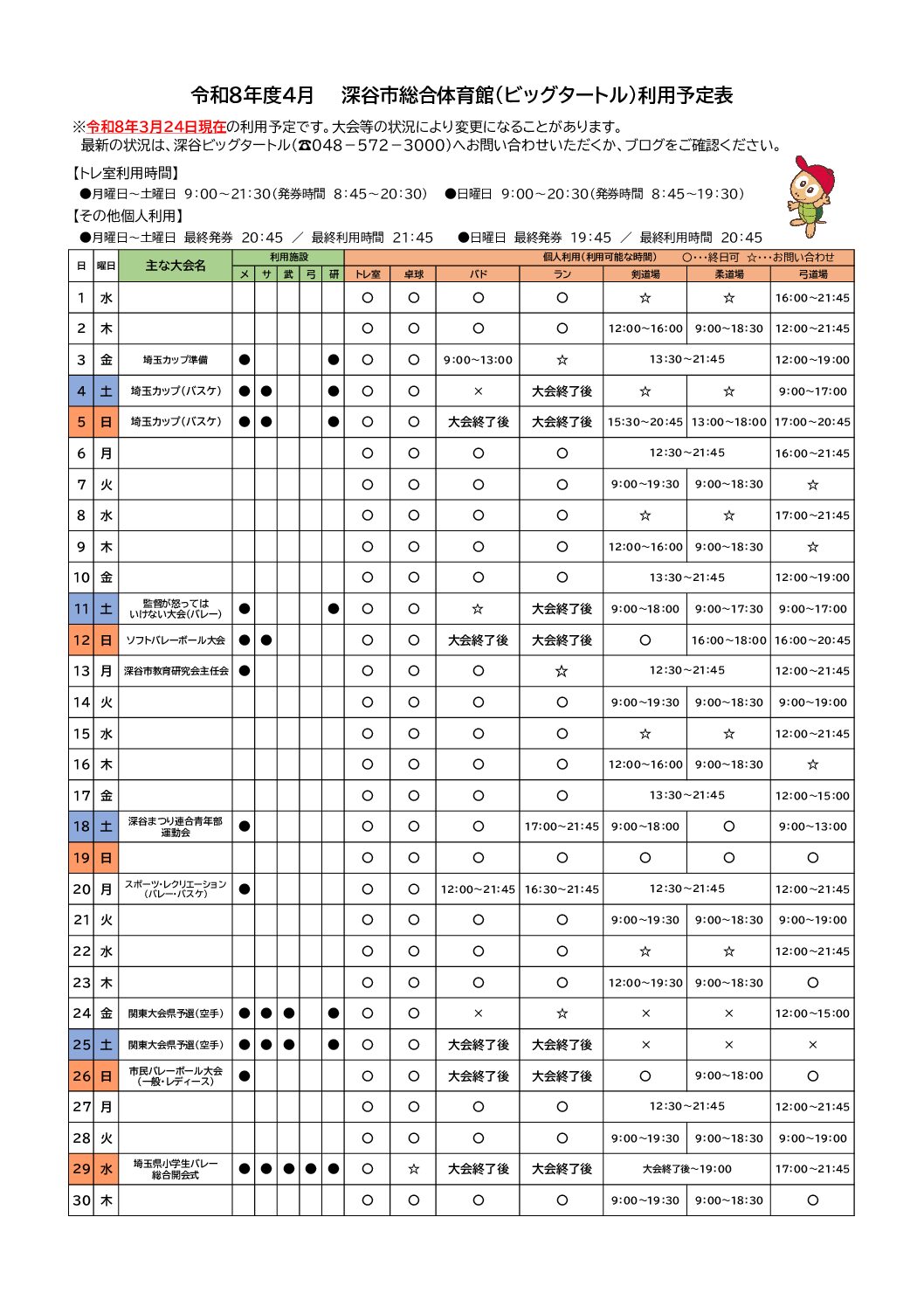 今月の利用予定表【PDF】