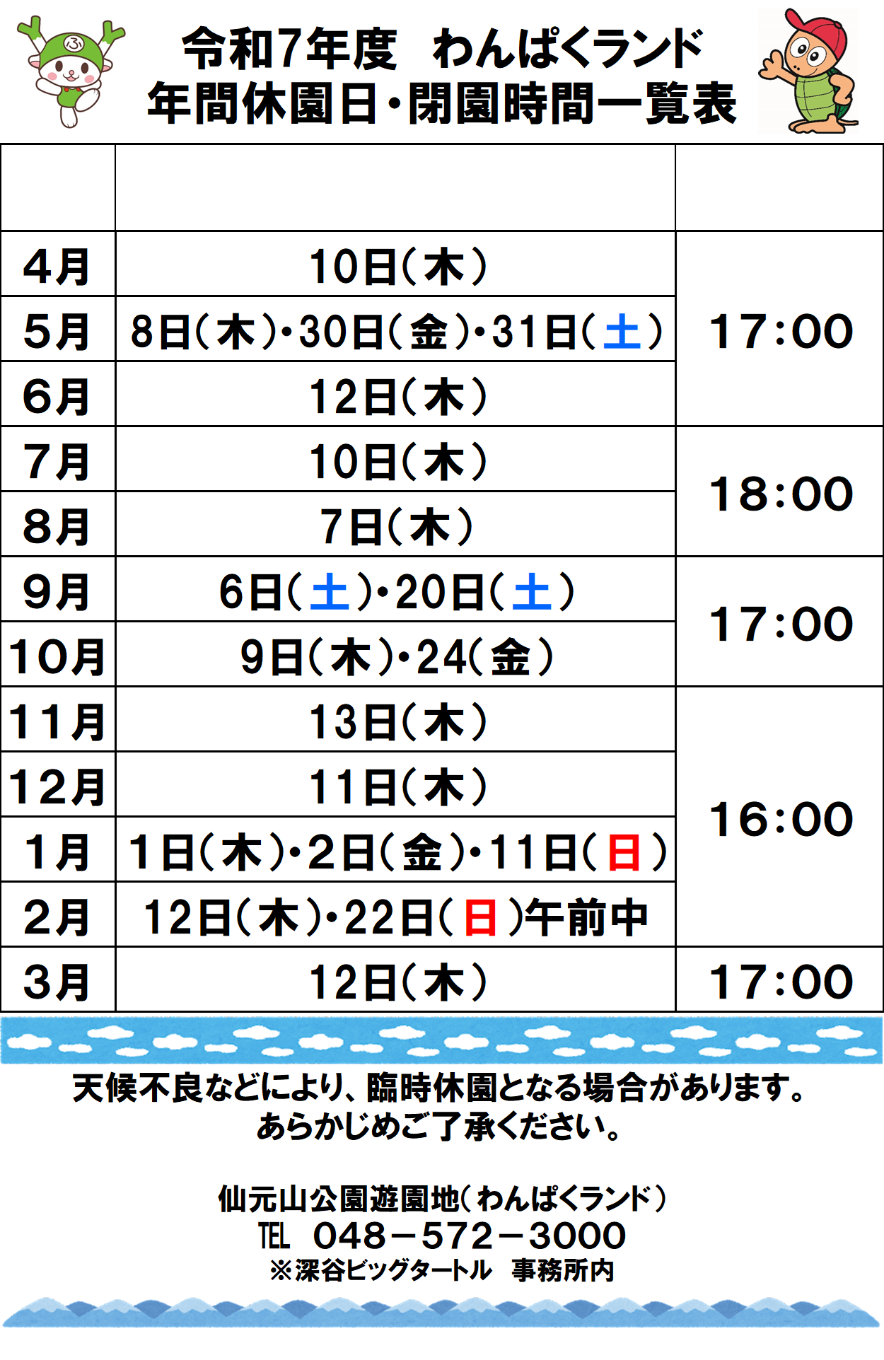 ※ その他、悪天候等、都合により臨時閉園することがあります。