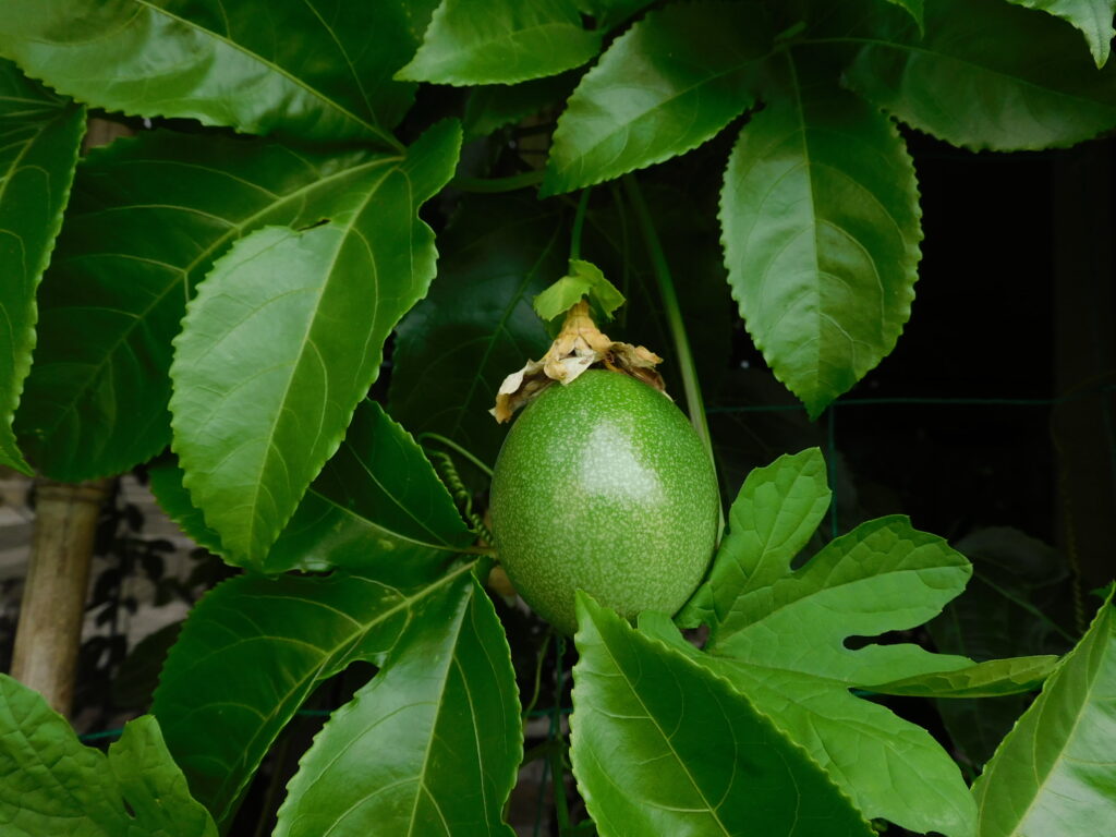 先日花が咲いたパッションフルーツが実りました!