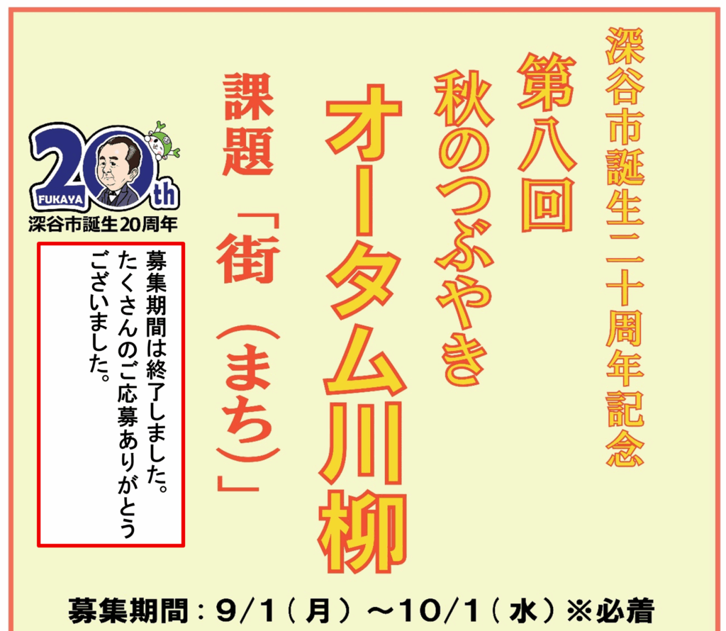 深谷市内在住、在学、在勤、または市内で活動する川柳サークル等に所属している方。 |