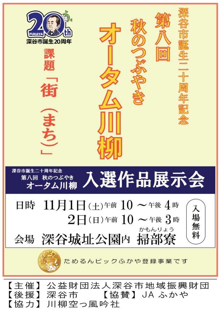 主催/公益財団法人 深谷市地域振興財団 後援/深谷市 協力/川柳空っ風吟社 |