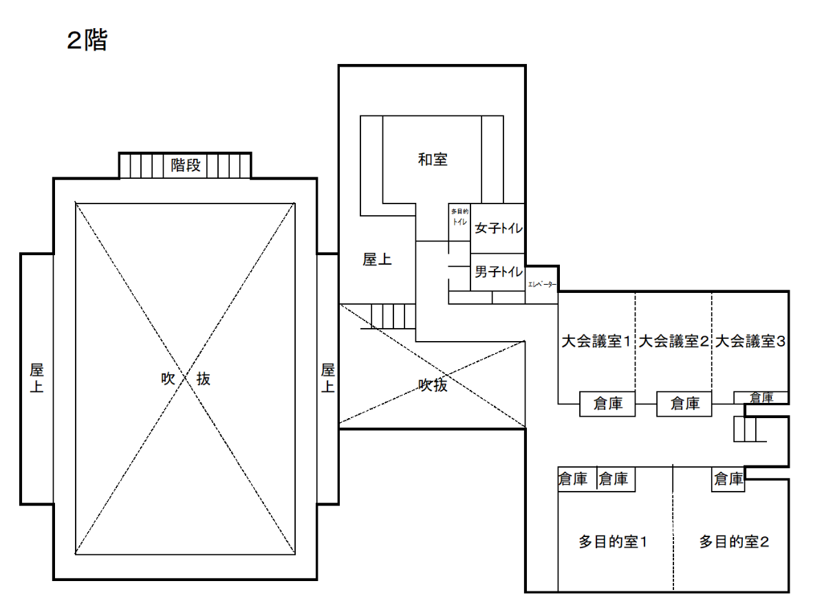 | 多目的室(全面) | 181平方メートル | 50人 | 600 | 2,200 | 300 | 150 |