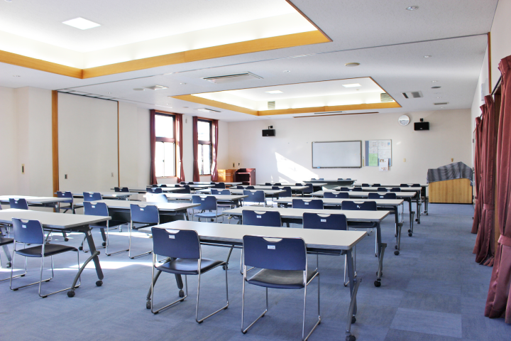 | 大会議室兼視聴覚室(半面) | 70平方メートル | 50人 | 300 | 1,100 | 150 | 75 |