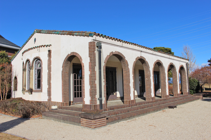 煉瓦造平屋建、建築面積112平方メートル。外観は英国農家に範をとりながらも、室内外の装飾に、中国、朝鮮、日本など東洋的な意匠を取り入れるなど、様々な要素が盛り込まれ、それらがバランスよくまとめられています。