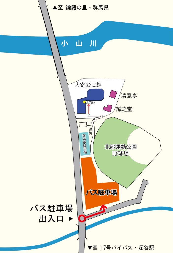 カーナビ等で検索する場合は、深谷市起会84-1(大寄公民館の住所)