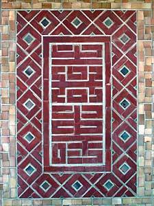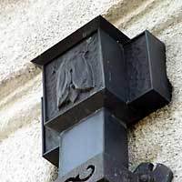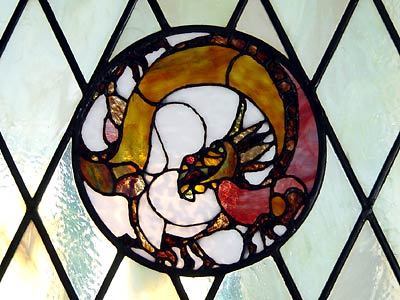 ひし形の格子に中央上部にシンボルとして図柄や家紋などを配する手法は、ヨーロッパの伝統的なステンドグラスに散見されます。