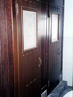化粧の間の扉にも、鳳凰と龍のステンドグラスが取り付けられています。玄関から入るとすぐに目を引きます。