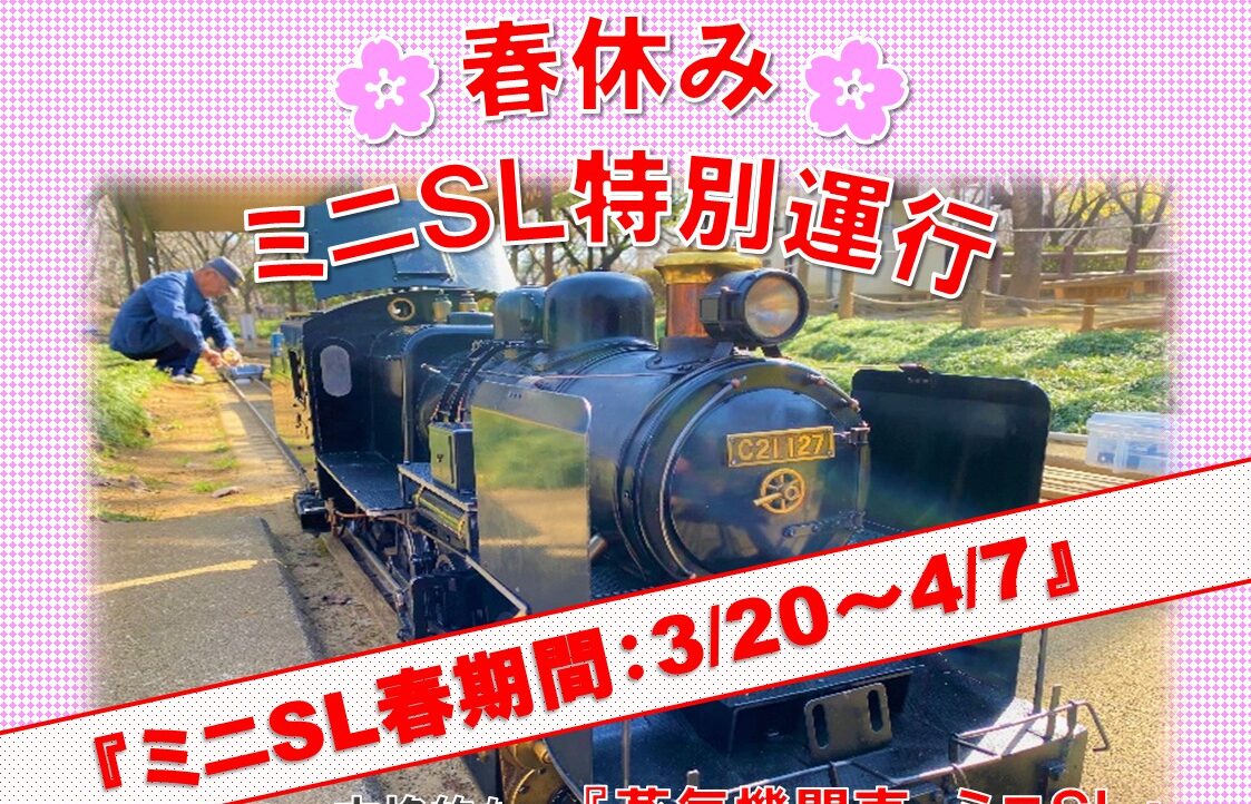 春休みのミニSL特別運行につきまして、3月20日より運行を再開し、その後3月25日より、下記の期間で運行を実施します。